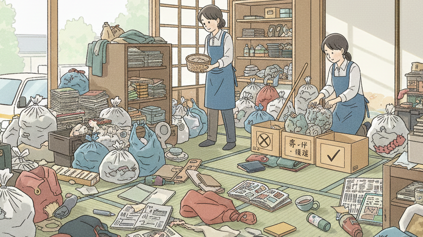 遺品回収は、故人の遺品を整 理・回収をする専門サービス です。ご遺族の負担を軽減し、 迅速かつ丁寧に対応します。 貴重品や思い出の品も慎重に 扱い、必要に応じてリサイクルや適切な処分を行います。遺族が安心して新たな一歩を踏み出せるようサポートします。