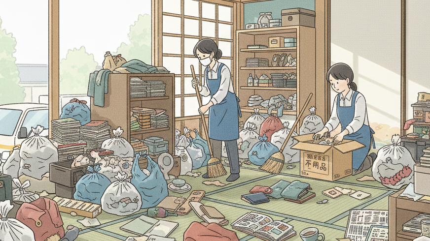 当店の不用品回収サービス は、ゴミ屋敷の片付けもご 対応いたします。家具や家電、雑貨など、どんな不用品もお任せください。